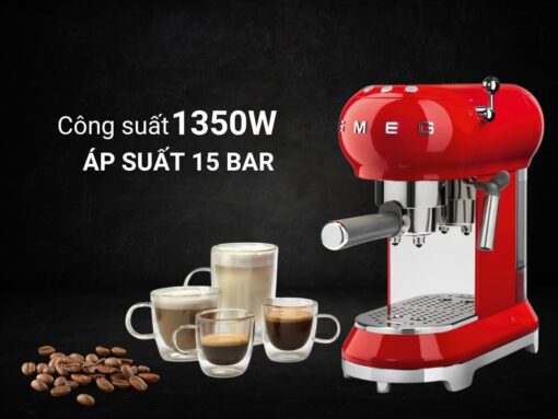 Máy pha cà phê Smeg ECF01RDEU được trang bị công suất 1350W mạnh mẽ, giúp đun nước nhanh và giúp bạn nhanh chóng có ngay cốc cà phê thơm ngon mà không cần chờ đợi quá lâu.