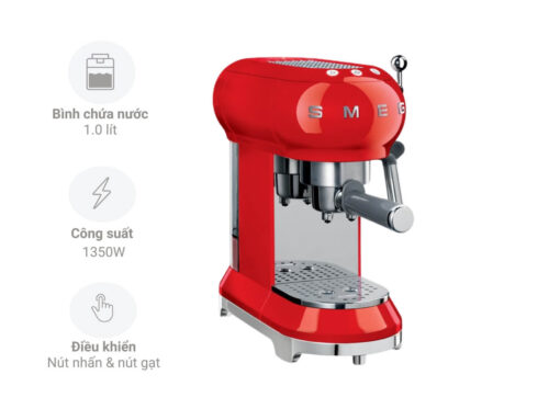 Máy pha cà phê Smeg ECF01RDEU thiết kế nhỏ gọn, sang trọng, điều khiển nút nhấn & nút gạt