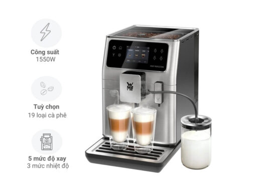 Máy pha cà phê WMF Perfection 680 CP814D10 sở hữu thiết kế sang trọng, tạo điểm nhấn ấn tượng cho không gian sử dụng, phù hợp dùng cho gia đình, văn phòng, khách sạn… Chức năng xay và pha cà phê tự động, ngăn chứa hạt cà phê 250g, bình chứa nước 3 lít, cùng chức năng tạo bọt sữa mịn mướt, giúp bạn nhanh chóng có được ly cà phê thơm ngon đúng chuẩn. Với 5 mức độ xay dễ dàng tuỳ chỉnh phù hợp với nhiều hương vị cà phê khác nhau. Ngoài ra bạn cũng có thể điều chỉnh nhiệt độ, lượng nước và độ đậm đặc của cà phê, tạo ra những hương vị cà phê đa dạng như espresso, cappuccino, latte, macchiato, cà phê đen…