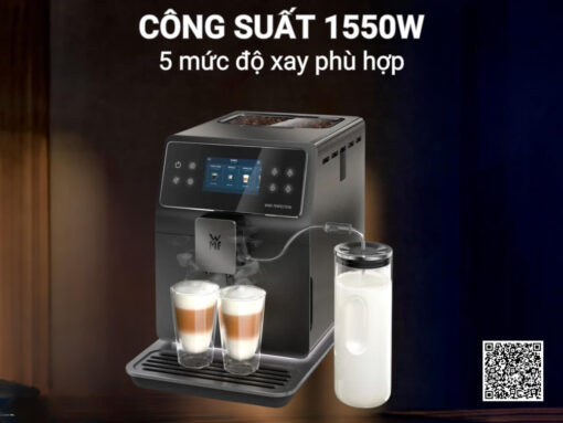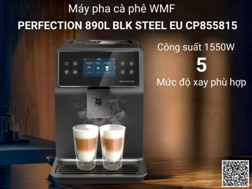 Máy pha cà phê WMF Perfection 890L BLK Steel EU CP855815 sở hữu thiết kế sang trọng, tạo điểm nhấn ấn tượng cho không gian sử dụng, phù hợp dùng cho gia đình, văn phòng, khách sạn… Chức năng xay và pha cà phê tự động, ngăn chứa hạt cà phê 250g, bình chứa nước 2 lít, cùng chức năng tạo bọt sữa chuyên nghiệp, giúp bạn nhanh chóng có được ly cà phê thơm ngon đúng chuẩn. Với 5 mức độ xay và 4 cấp độ đậm nhạt, bạn có thể dễ dàng tuỳ chỉnh để tạo ra những hương vị cà phê đa dạng như Ristretto, Espresso, Cappuccino, Latte Macchiato, Flat White…