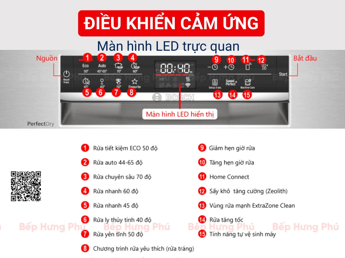 Máy rửa chén Bosch SMI6ZDS49E thiết kế hệ thống điều khiển cảm ứng, màn hình LED hiện đại, đảm bảo sử dụng dễ dàng, tiện lợi. Hệ thống điều khiển cảm ứng hiện đại, nhanh và nhạy, mọi thao tác chọn chương trình rửa hay các chức năng khác được thực hiện nhanh chóng, tiện lợi chỉ cần chạm nhẹ trên màn hình.