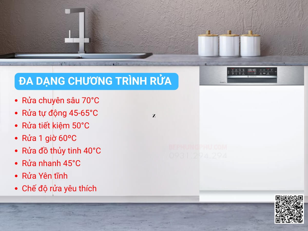 Máy rửa chén Bosch SMI6ZDS49E được 8 chương trình rửa đa dạng: