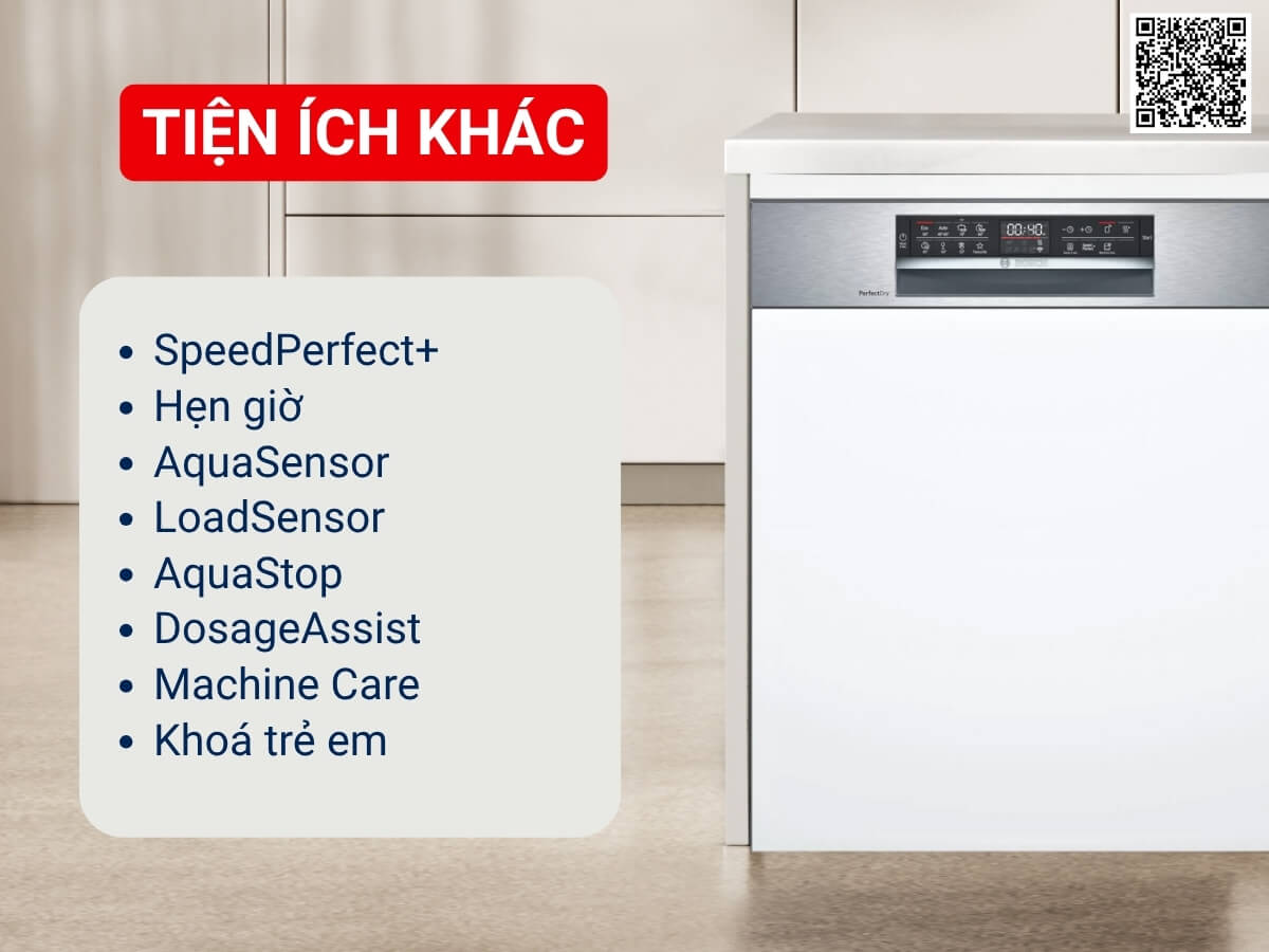 – SpeedPerfect+: Chế độ rửa nhanh tăng cường cho phép giảm đến 75% thời gian rửa nhưng vẫn đảm bảo hiệu quả rửa sạch.