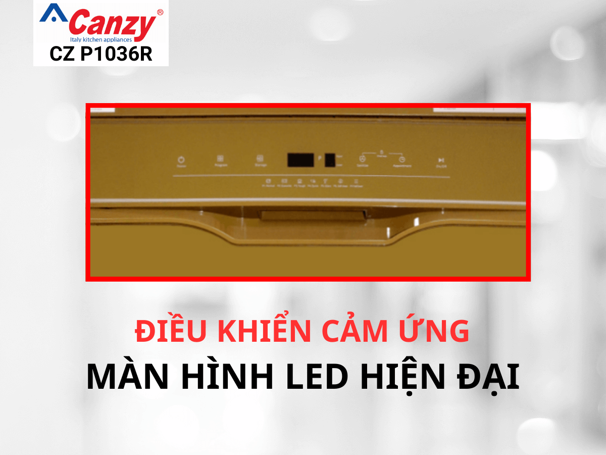 Dòng máy rửa bát Canzy CZ P1036R NEW nổi bật với hệ thống điều khiển cảm ứng và màn hình LED hiện đại. Bảng điều khiển trang bị công nghệ cảm ứng cao cấp, cho phép người dùng dễ dàng chọn các chế độ rửa chỉ bằng cách chạm nhẹ.