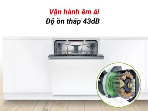 Máy rửa chén Bosch SMD8TCX04E sử dụng động cơ không chổi than EcoSilence Drive ưu việt, được thiết kế để mang lại hiệu suất hoạt động mạnh mẽ, giảm tiếng ồn, tiết kiệm năng lượng và tăng tuổi thọ cho động cơ. Máy hoạt động với độ ồn thấp chỉ từ 43dB. Do đó máy hoạt động êm ái, nhẹ nhàng, gần như không gây tiếng ồn lớn ảnh hưởng đến sinh hoạt cũng như giấc ngủ của gia đình.