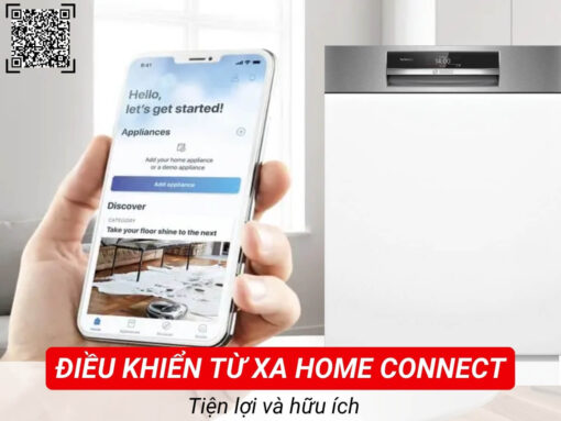 Máy rửa chén Bosch SMI8ZDS81T được trang bị tính năng điều khiển từ xa trên thiết bị di động thông qua ứng dụng Home Connect. Bạn có thể điều khiển máy rửa chén của mình từ bất cứ nơi đâu và bất cứ khi nào mà không cần thao tác trực tiếp trên máy, rất tiện lợi và linh hoạt. Với Home Connect, bạn có thể dễ dàng điều chỉnh các chế độ rửa, chọn sấy hé cửa, cài đặt thời gian hoạt động, kiểm tra tình trạng máy rửa chén, nhận thông báo lỗi nếu có…