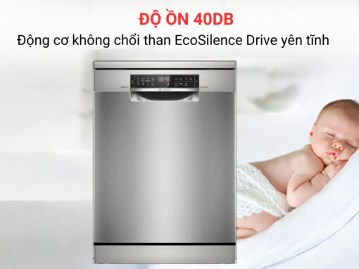 Độ ồn tối đa ở mức 40dB được đánh giá là mức độ tiếng ồn khá thấp, không gây ảnh hưởng đến không gian sinh hoạt và nghỉ ngơi của gia đình. Với mức độ ồn này, bạn có thể yên tâm sử dụng máy rửa chén Bosch SMS6ZCI16E vào ban đêm hay sáng sớm mà không lo ảnh hưởng đến giấc ngủ của các thành viên trong gia đình.