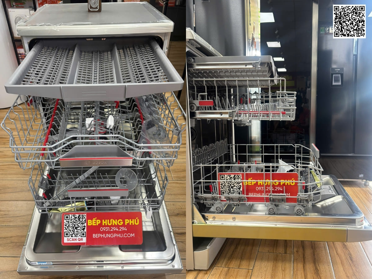 Đặc biệt, 3 dàn rửa được thiết kế thông minh, có thể điều chỉnh linh hoạt để tối ưu hóa không gian chứa, cho phép bạn dễ dàng sắp xếp được nhiều bát đĩa, đồ dùng và cả những nồi chảo và dụng cụ nấu có kích thước lớn mà không bị hạn chế về không gian. Đặc biệt là thiết kế giỏ thứ 3 đặc biệt ở trên cùng dành riêng cho các dụng cụ nhỏ như dao, kéo, đũa, muỗng, nĩa, chén đựng nước chấm… để tối ưu không gian chứa bên dưới.