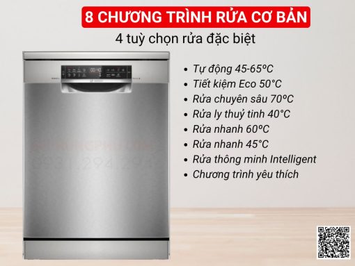 Máy rửa chén Bosch SMS6ZCI02P được trang bị 8 chương trình rửa cơ bản như sau: