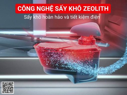 Công nghệ này sử dụng các hạt khoáng tự nhiên Zeolith, với đặc tính hút ẩm cực tốt, sẽ hấp thụ hơi ẩm từ hơi nước trong giai đoạn rửa, sau đó được xử lý và giải phóng thành hơi ấm trong giai đoạn sấy. Luồng hơi ấm nóng này sẽ được bơm vào khoang máy, làm khô bát đĩa và quá trình này lặp lại cho đến khi bát đĩa được khô ráo hoàn toàn, không còn hơi ẩm và nước đọng. Với sấy Zeolith, bát đĩa và đồ dùng sẽ được sấy khô một cách hiệu quả, đồng thời rất tiết kiệm điện.