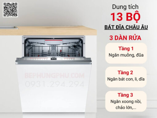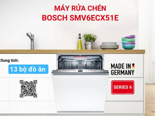 Máy rửa chén Bosch SMV6ECX51E thiết kế âm toàn phần tối ưu không gian