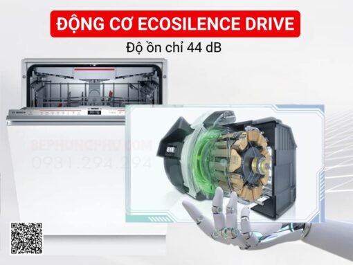 Động cơ không chổi than EcoSilence Drive giúp máy rửa chén Bosch SMV6ECX51E vận hành bền bỉ và êm ái với độ ồn chỉ 44 dB. Đây được đánh giá là mức độ tiếng ồn khá thấp, không gây ảnh hưởng đến không gian sinh hoạt và nghỉ ngơi của gia đình. Với mức độ ồn này, bạn có thể yên tâm sử dụng máy rửa chén Bosch SMV6ECX51E vào ban đêm hay sáng sớm mà không lo ảnh hưởng đến giấc ngủ của các thành viên trong gia đình.