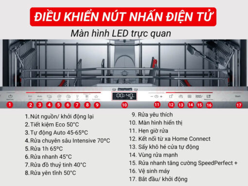 – Machine Care: Chương trình Machine Care sẽ chạy một chu trình rửa và vệ sinh toàn bộ máy, loại bỏ mọi cặn bẩn, vi khuẩn trong máy rửa chén, giúp tăng tuổi thọ của máy đồng thời tiết kiệm thời gian khi vệ sinh máy bằng cách thủ công.