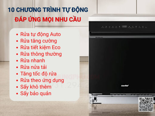 Máy rửa chén Comfee CDW-14F60TB được trang bị 10 chương trình tự động, đem đến cho người dùng nhiều lựa chọn để phù hợp với khối lượng, độ bẩn của bát đĩa cũng như nhu cầu sử dụng của mình.