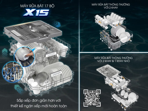 3 dàn rửa – dung tích 17 bộ đồ ăn châu Âu