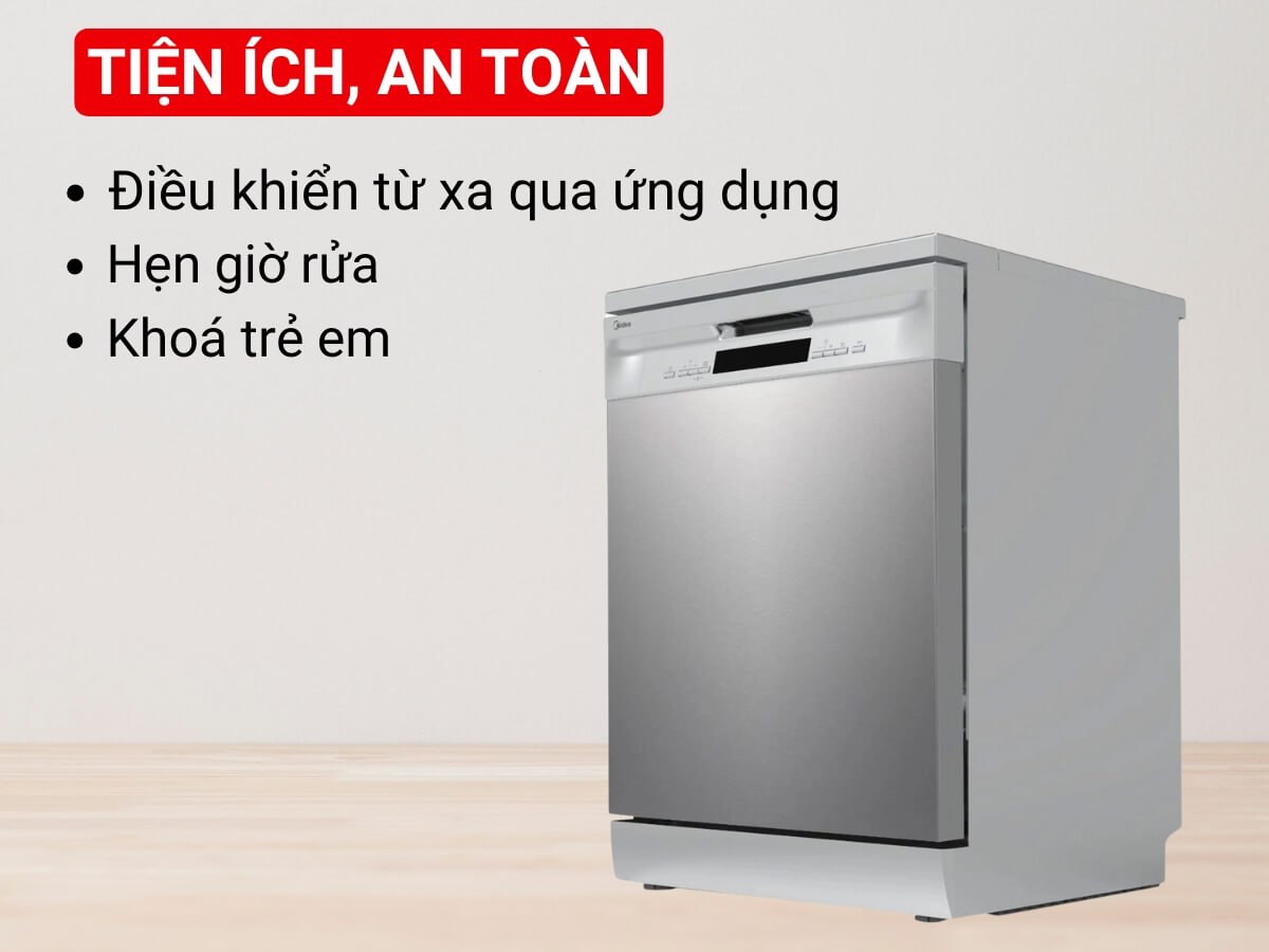 – Điều khiển từ xa qua ứng dụng: cho phép kết nối máy rửa với smartphone thông qua ứng dụng MSmartLife điều khiển máy rửa chén của mình từ bất cứ nơi đâu và bất cứ khi nào mà không cần thao tác trực tiếp trên máy, rất tiện lợi và linh hoạt.