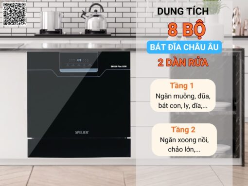 Máy rửa chén Spelier SMS 08 Plus 1/ DW có dung tích 8 bộ đồ ăn châu Âu, là lựa chọn lý tưởng cho gia đình ít người, nhu cầu sử dụng ít, nhưng vẫn đảm bảo sử dụng tiện lợi và hiệu quả rửa sạch tốt nhất.