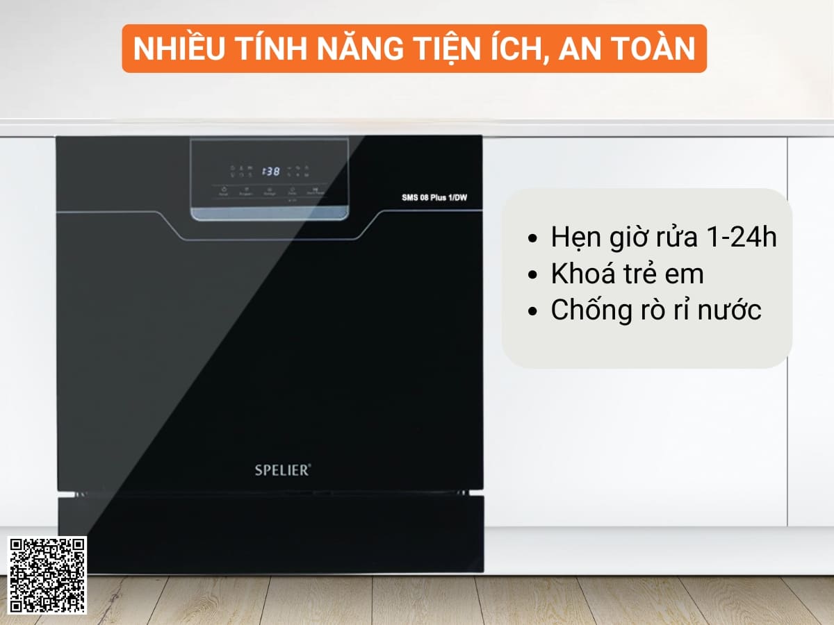Máy rửa chén Spelier SMS 08 Plus 1/ DW thiết kế để bàn nhỏ gọn, tiện lợi