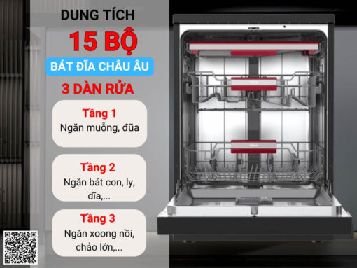 3 dàn rửa – dung tích 15 bộ đồ ăn châu Âu
