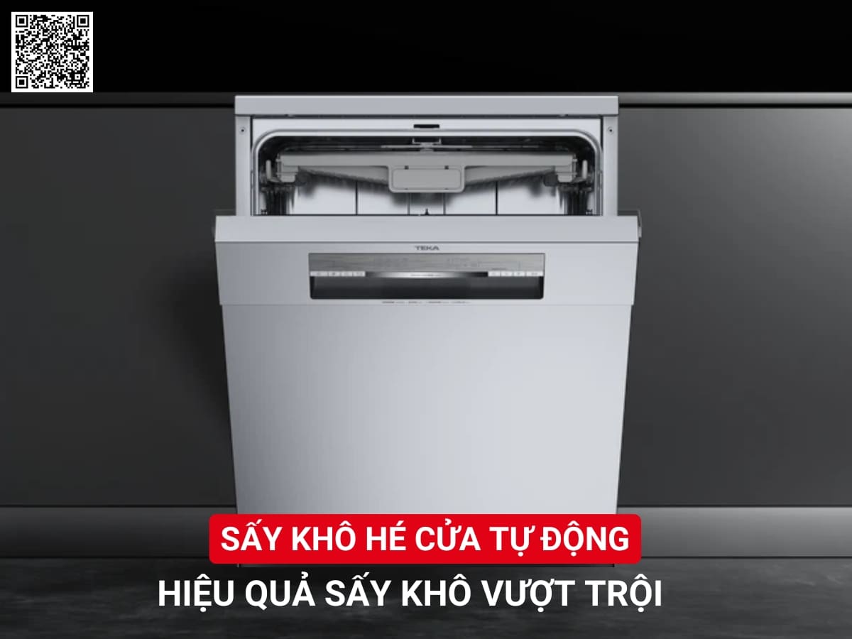 Chức năng “Tự động hé cửa” là một tính năng thông minh được tích hợp trên máy rửa chén Teka DFS 76850. Sau khi kết thúc chu trình rửa, cửa máy sẽ tự động hé mở một khoảng nhỏ. Việc này giúp hơi nước nóng và hơi ẩm thoát ra ngoài một cách tự nhiên, đồng thời không khí khô từ bên ngoài có thể lưu thông vào trong. Kết quả là quá trình sấy khô diễn ra nhanh hơn, hiệu quả hơn, đặc biệt với đồ nhựa và thủy tinh, giúp tiết kiệm năng lượng và hạn chế tối đa các vệt nước đọng lại.