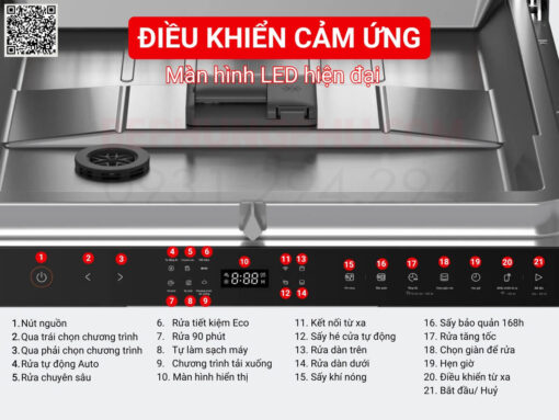 – Hẹn giờ rửa 1-24h: cho phép bạn chủ động hẹn giờ để máy tự động khởi động từ 1-24h, giúp người dùng linh động sắp thời gian làm việc, đồng thời tiết kiệm điện năng hơn khi để máy rửa vào ban đêm.