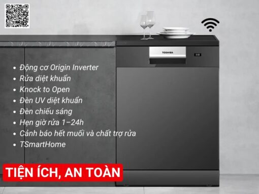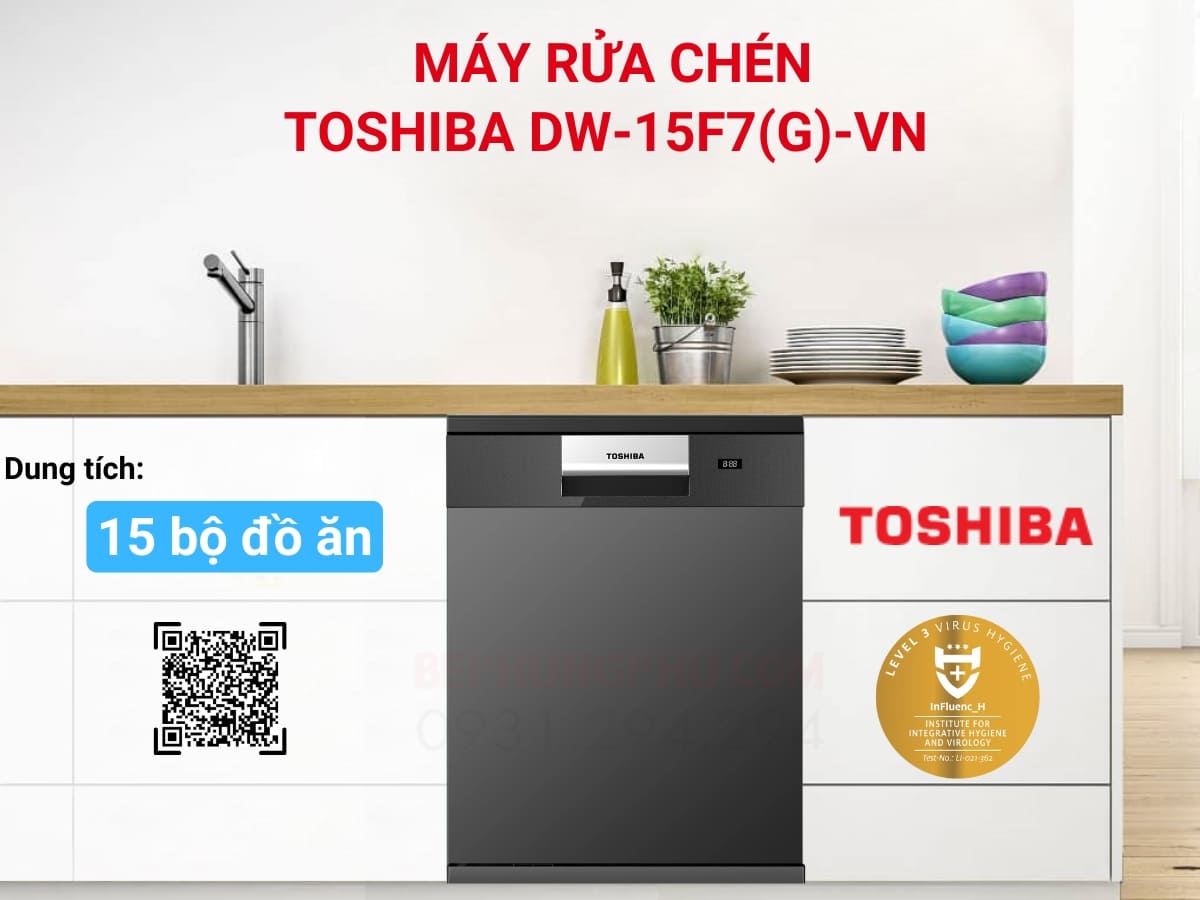 Máy rửa chén Toshiba DW-15F7(G)-VN thiết kế độc lập sang trọng