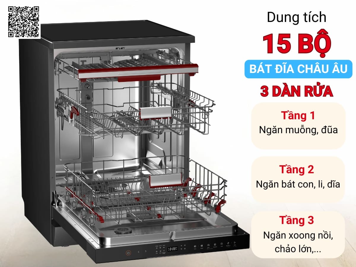 3 dàn rửa – dung tích 15 bộ đồ ăn châu Âu