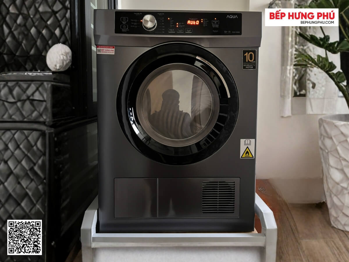 Máy sấy Aqua AQH-V800H SS thiết kế cửa trước hiện đại, khối lượng sấy 8kg