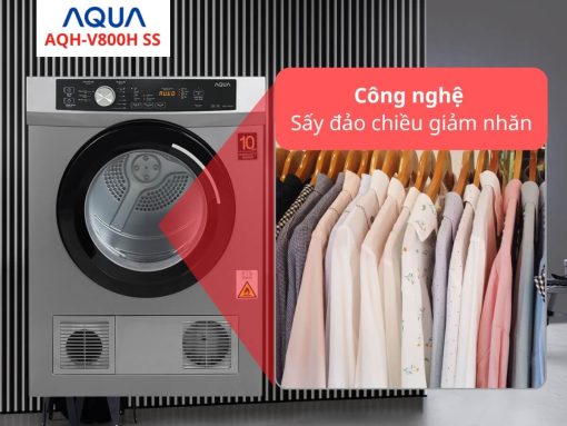 Máy sấy Aqua AQH-V800H SS ứng dụng công nghệ sấy đảo chiều với lồng sấy hoạt động theo nguyên lý đảo chiều luân phiên liên tục trong quá trình sấy, giúp quần áo được tách rời, không bị cuốn xoắn vào nhau, hạn chế hình thành nếp nhăn so với kiểu sấy thông thường.