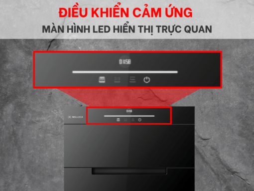 Máy sấy bát Malloca MSC-1005 được trang bị bảng điều khiển cảm ứng hiện đại với màn hình LED hiển thị rõ ràng, dễ đọc và hỗ trợ người dùng dễ dàng quan sát cũng như điều khiển máy.