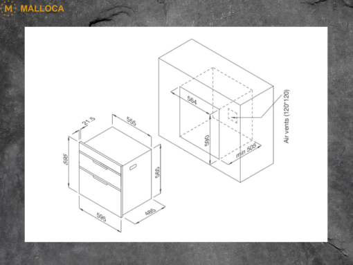 - Kích thước lắp đặt: 564R x 505S x 590C mm
