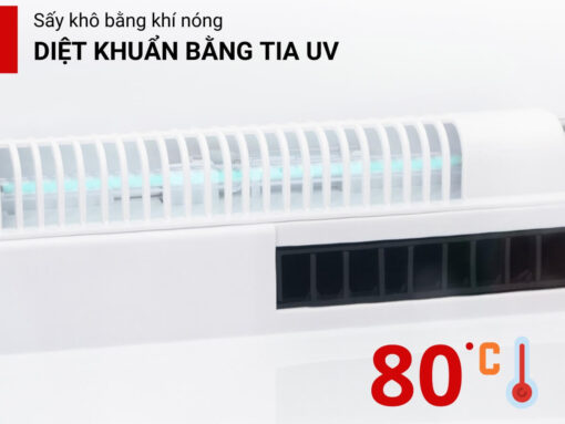 Bên cạnh đó, máy còn có chức năng diệt khuẩn bằng tia UV. Tia UV rất hiệu quả trong việc tiêu diệt vi khuẩn và vi sinh vật bám trên bề mặt bát đĩa, đồ dùng, tăng cường bảo vệ an toàn cho sức khoẻ người dùng.