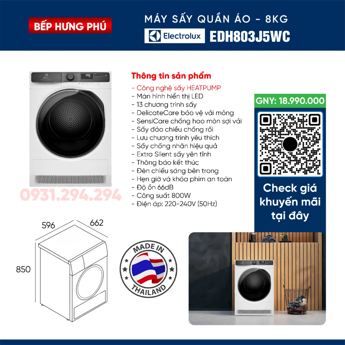 Ðặc biệt khi mua máy sấy Electrolux EDH803J5WC tại showroom Siêu Thị Bếp Hưng Phú quý khách có thể nhận ưu đãi chiết khấu đến 20%.