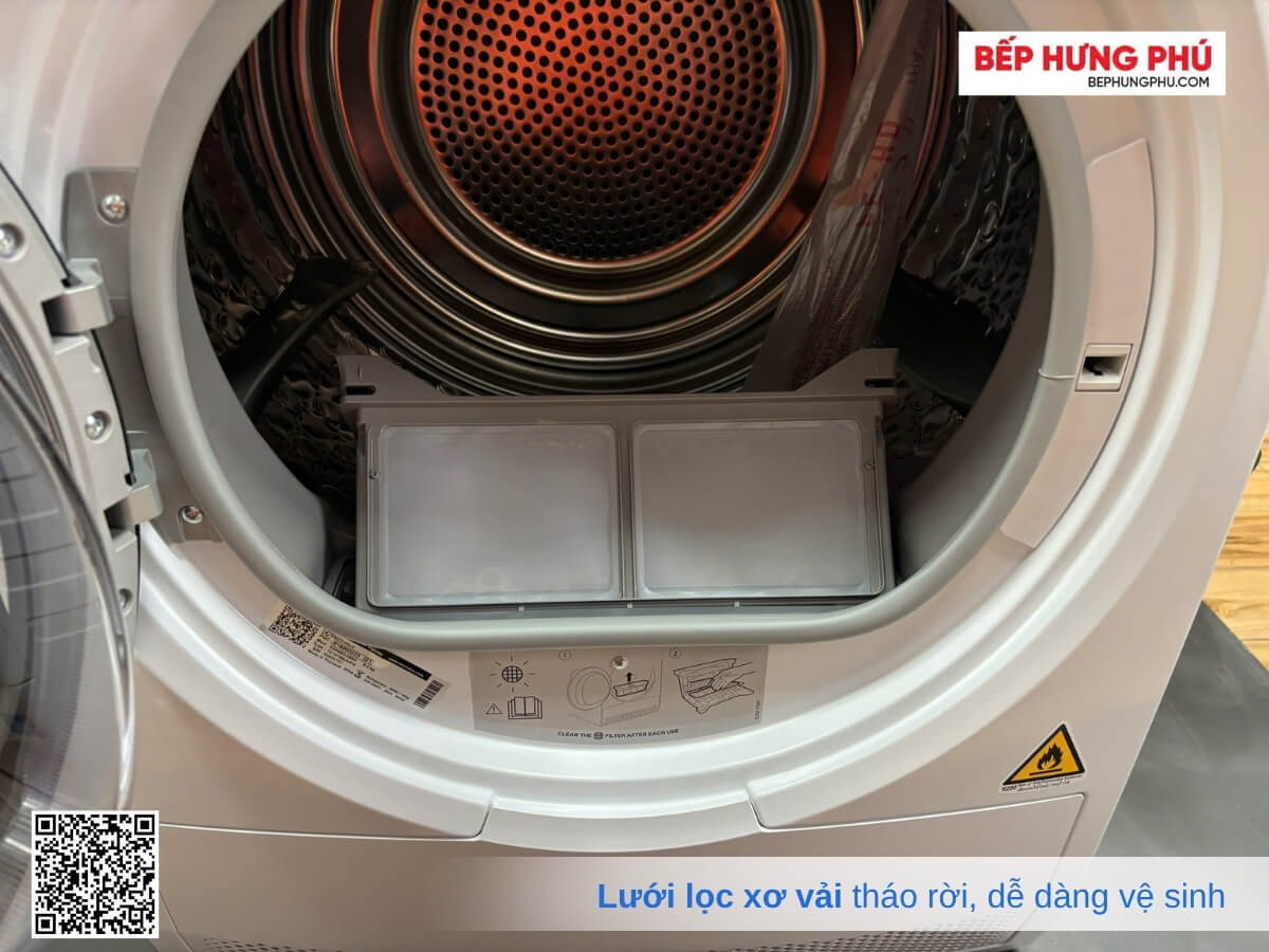 Ngoài ra, cơ chế sấy bơm nhiệt không cần lắp thêm ống thông hơi nên có thể dễ dàng lắp đặt máy ở mọi không gian khác nhau.