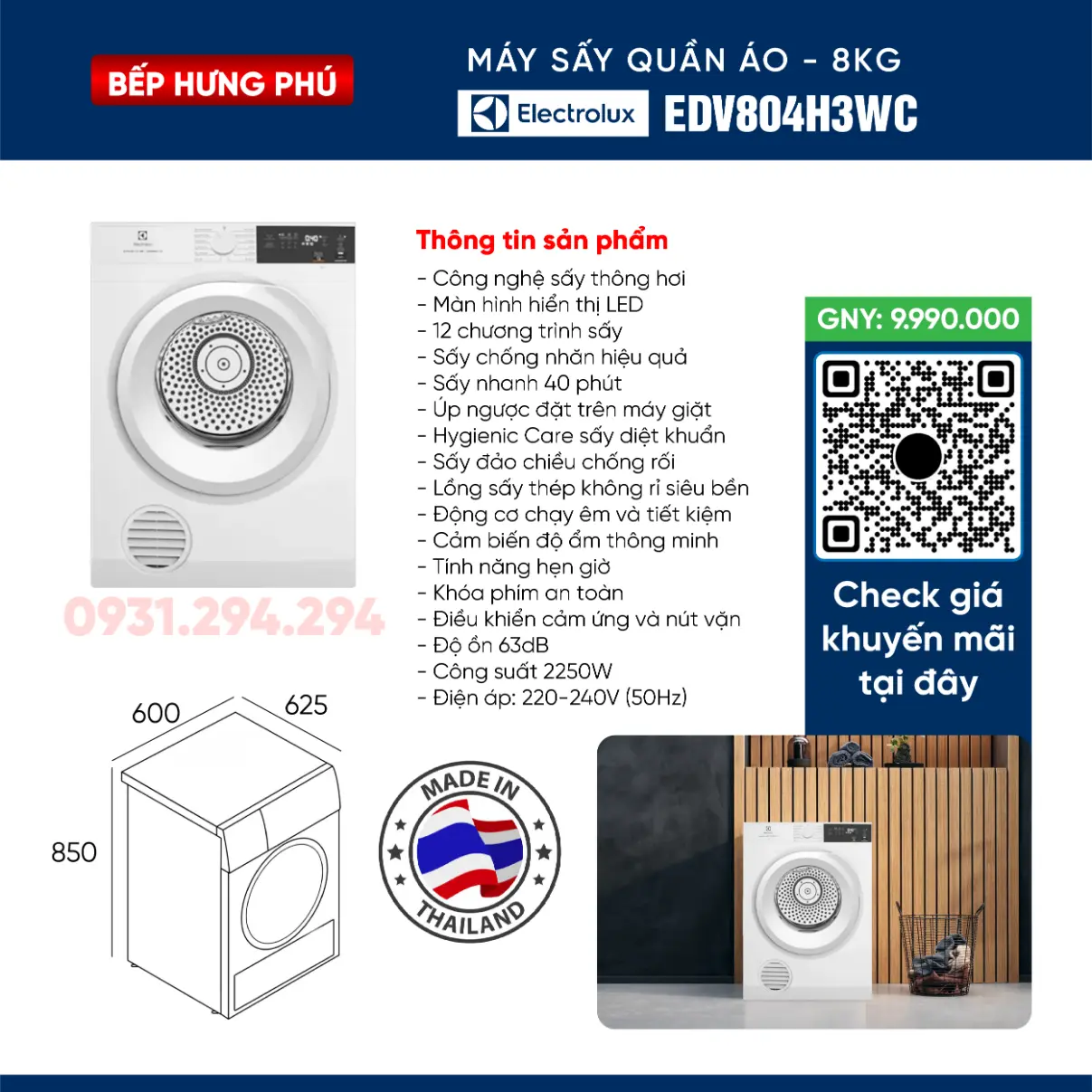 Hiện tại, sản phẩm máy sấy Electrolux EDV804H3WC đang được bán tại website cũng như Showroom của Bếp Hưng Phú với giá cực kỳ ưu đãi với những chính sách bảo hành từ lỗi của nhà sản xuất. Quý khách hãy gọi trực tiếp vào đường dây nóng để nhận được những tư vấn chi tiết hoặc đặt hàng trên website, Bếp Hưng Phú sẽ gọi xác nhận đơn hàng với quý khách.