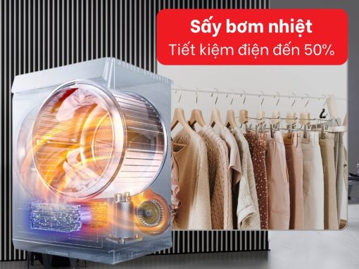 Ngoài ra, cơ chế sấy bơm nhiệt không cần lắp thêm ống thông hơi nên có thể dễ dàng lắp đặt máy ở mọi không gian khác nhau.