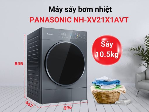 Máy sấy Panasonic NH-XV21X1AVT thuộc dòng máy sấy bơm nhiệt cùng với 3 động cơ Inverter cho khả năng tiết kiệm điện cực tốt, khối lượng sấy 10.5kg phù hợp với gia đình đông người từ 7 thành viên trở lên. 15 chương trình sấy đáp ứng tốt nhu cầu sử dụng của gia đình. Máy được trang bị nhiều công nghệ như: cảm biến nhiệt độ, khối lượng quần áo, nanoe™ X khử mùi, diệt khuẩn… Bên cạnh đó là nhiều tính năng tiện ích như: điều chỉnh thời gian, mức độ sấy khô, tạm dừng để thêm đồ sấy, hẹn giờ khởi động máy, khoá an toàn trẻ em… đem đến trải nghiệm sử dụng tiện lợi cho người dùng.