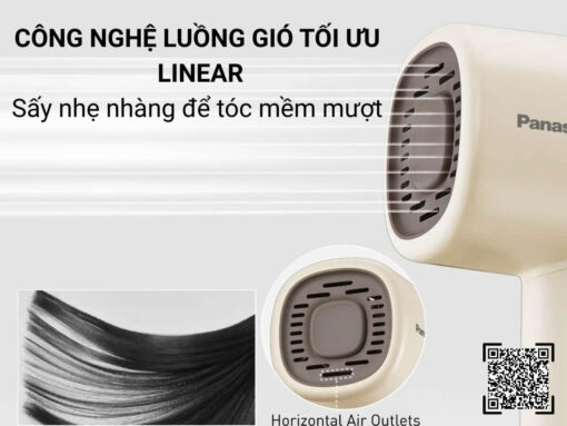 Công nghệ luồng gió tối ưu Linear với thiết kế lỗ thổi khí nằm ngang giúp sấy nhẹ nhàng để tóc mềm mượt và không bị rối