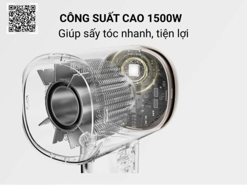Công suất cao 1500W giúp sấy tóc nhanh, tiện lợi.