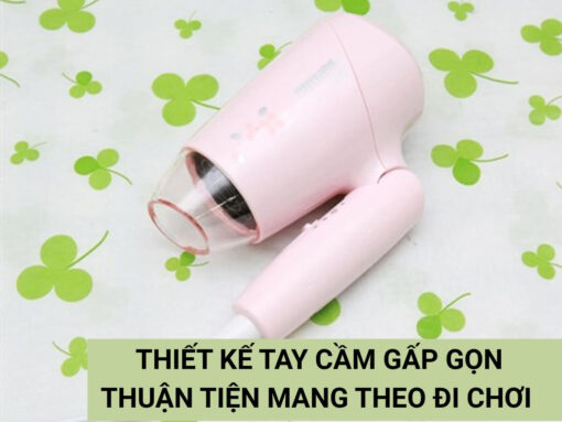 – Thiết kế tay cầm gấp gọn thuận tiện mang theo đi chơi, du lịch, và móc treo dễ dàng cất giữ máy.