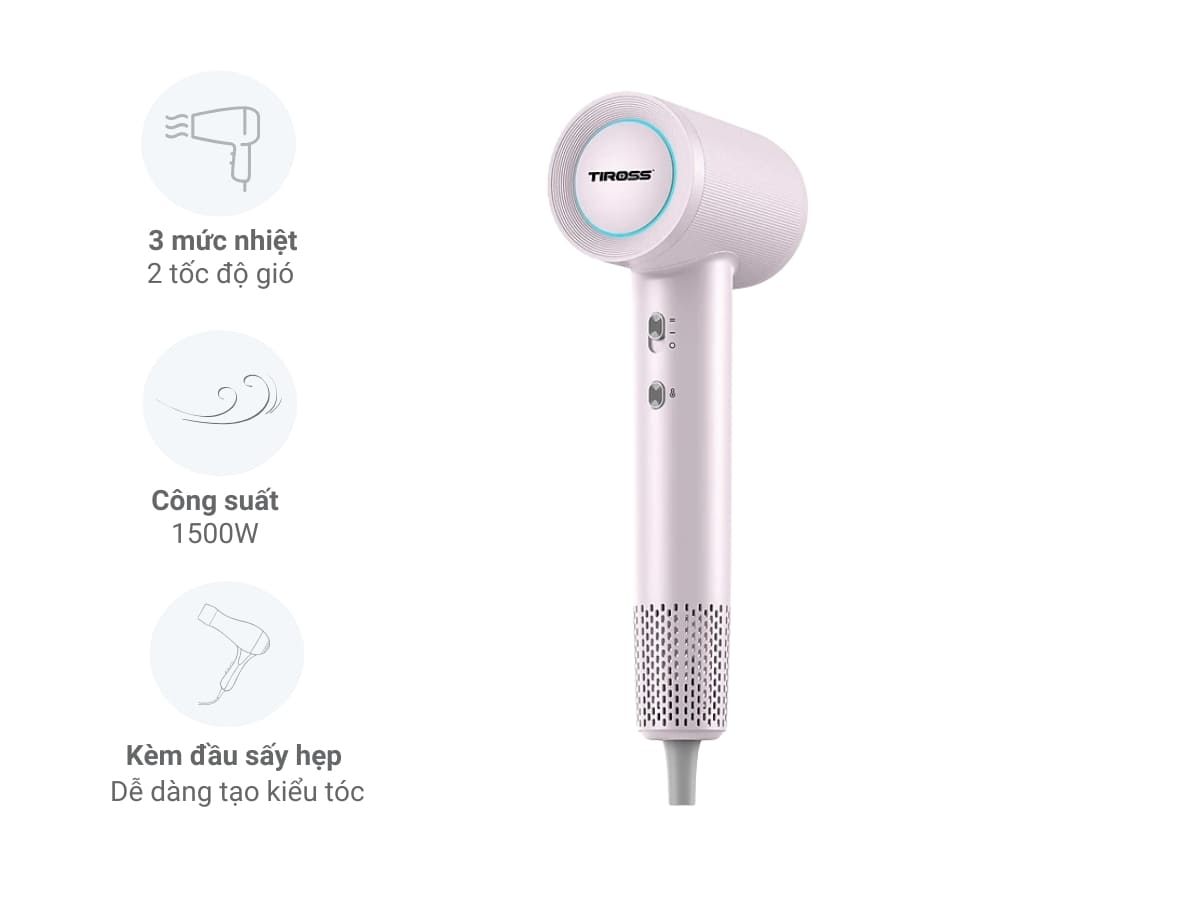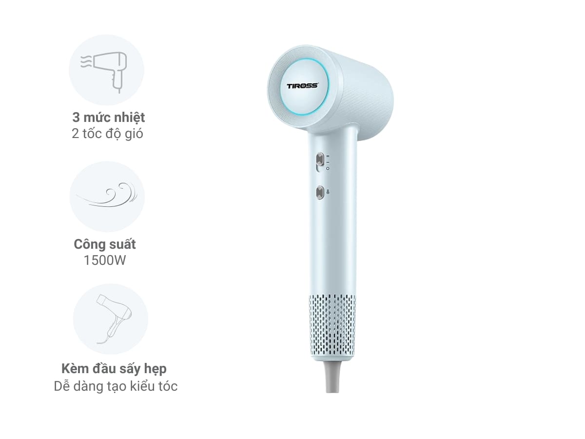 - Công suất 1500W: Giúp sấy tóc khô nhanh chóng, tiết kiệm thời gian.