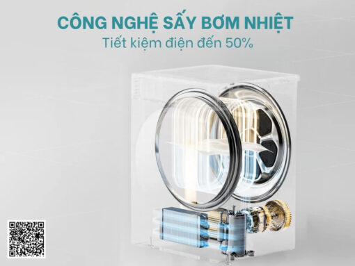 Đặc biệt, cơ chế sấy bơm nhiệt không cần lắp thêm ống thông hơi nên có thể dễ dàng lắp đặt máy ở mọi không gian khác nhau.