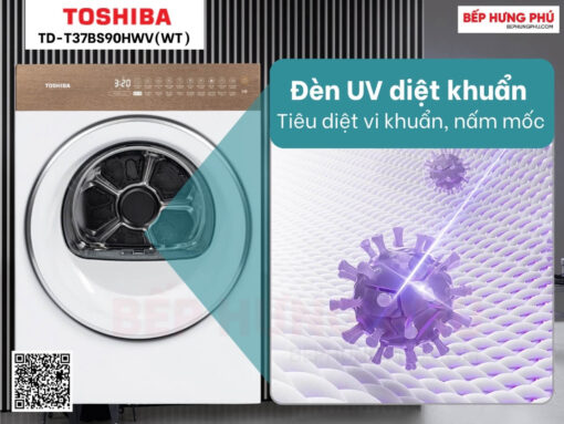 Máy sấy Toshiba TD-T37BS90HWV(WT) còn trang bị đèn UV chiếu vào quần áo trong khi sấy, giúp tiêu diệt vi khuẩn, nấm mốc, giúp đồ thơm tho và bảo vệ sức khỏe cho cả gia đình, nhất là với những người có làn da nhạy cảm.