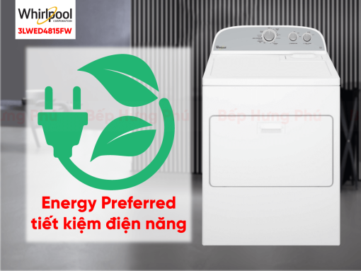 Máy sấy Whirlpool 3LWED4815FW sẽ tự động điều chỉnh thời gian cũng như nhiệt độ tương ứng với khối lượng quần áo nhiều hay ít trong lồng giặt, giúp tiết kiệm điện năng cho người dùng.