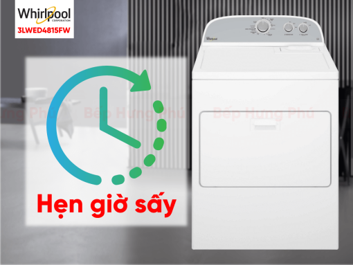 Máy sấy Whirlpool 3LWED4815FW còn có chức năng hẹn giờ, phù hợp với những người dùng thường xuyên bận rộn, không có thời gian ở nhà hoặc muốn dùng máy sấy trong giờ thấp điểm để tiết kiệm điện năng, người dùng có thể cài đặt sẵn chương trình sấy trong khoảng thời gian mong muốn.