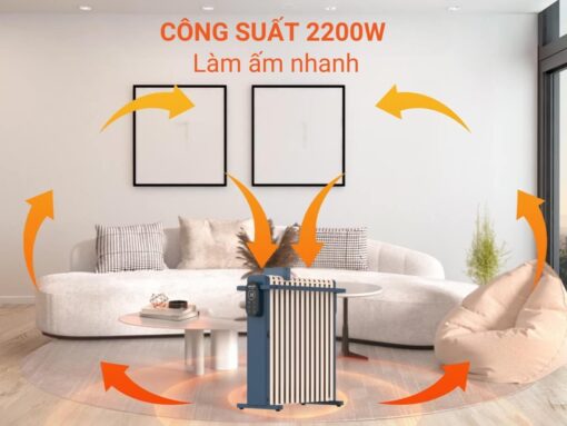 Công suất 2200W làm ấm nhanh, diện tích sử dụng 20-29m²