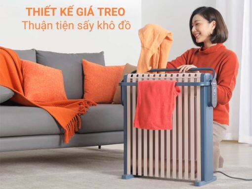 Máy sưởi dầu Philips AHR3124NYS còn có thiết kế 2 giá treo giúp bạn dễ dàng treo và sấy khô đồ như quần áo, khăn, đồ trẻ em… Trong những tình huống cấp bách, bạn có thể tận dụng giá treo này để sấy khô đồ một cách nhanh chóng, dễ dàng, tăng thêm trải nghiệm tiện dụng.