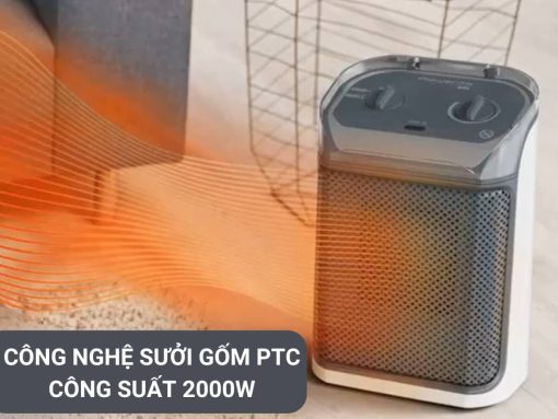 Công nghệ sưởi gốm PTC, công suất 2000W làm ấm nhanh