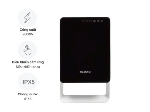 Máy sưởi nhà tắm 2Lock Korea sở hữu công nghệ sưởi khí nóng cùng công suất 2000W giúp làm ấm nhanh và tỏa nhiệt đều. Thiết kế treo tường nhỏ gọn, chống nước IPX5 an toàn, kết hợp điều khiển cảm ứng và điều khiển từ xa tiện lợi, mang đến không gian phòng tắm ấm áp, thoải mái và tiết kiệm năng lượng.