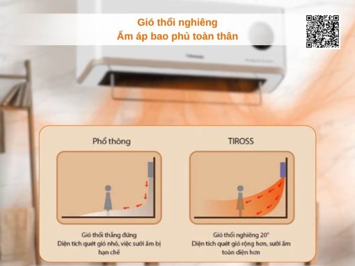 Máy sưởi nhà tắm Tiross TS9293 sở hữu thiết kế treo tường hiện đại, công suất mạnh mẽ 2200W cùng công nghệ sưởi PTC an toàn, giúp làm ấm nhanh và ổn định trong không gian lên đến 20m². Thiết bị trang bị 3 chế độ gió linh hoạt, điều khiển cảm ứng và remote tiện lợi, hẹn giờ 24 tiếng cùng khả năng chống nước IPX3, mang đến trải nghiệm sưởi ấm an toàn, tiết kiệm và thoải mái cho gia đình trong mùa lạnh.